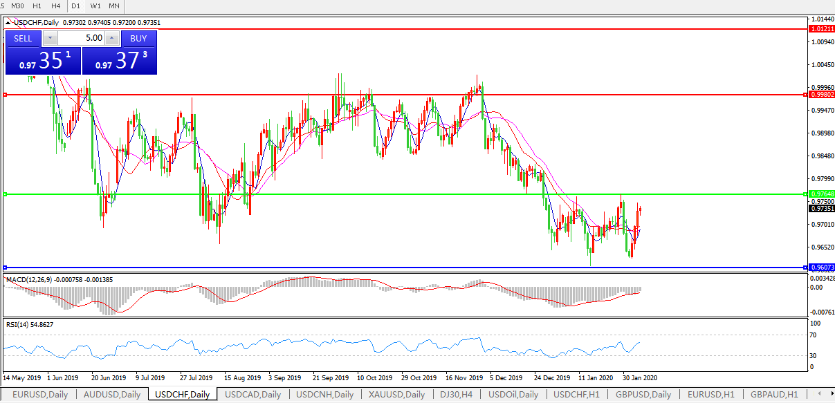 交易策略:0.9765下方看跌,目标0.9600、0.9550