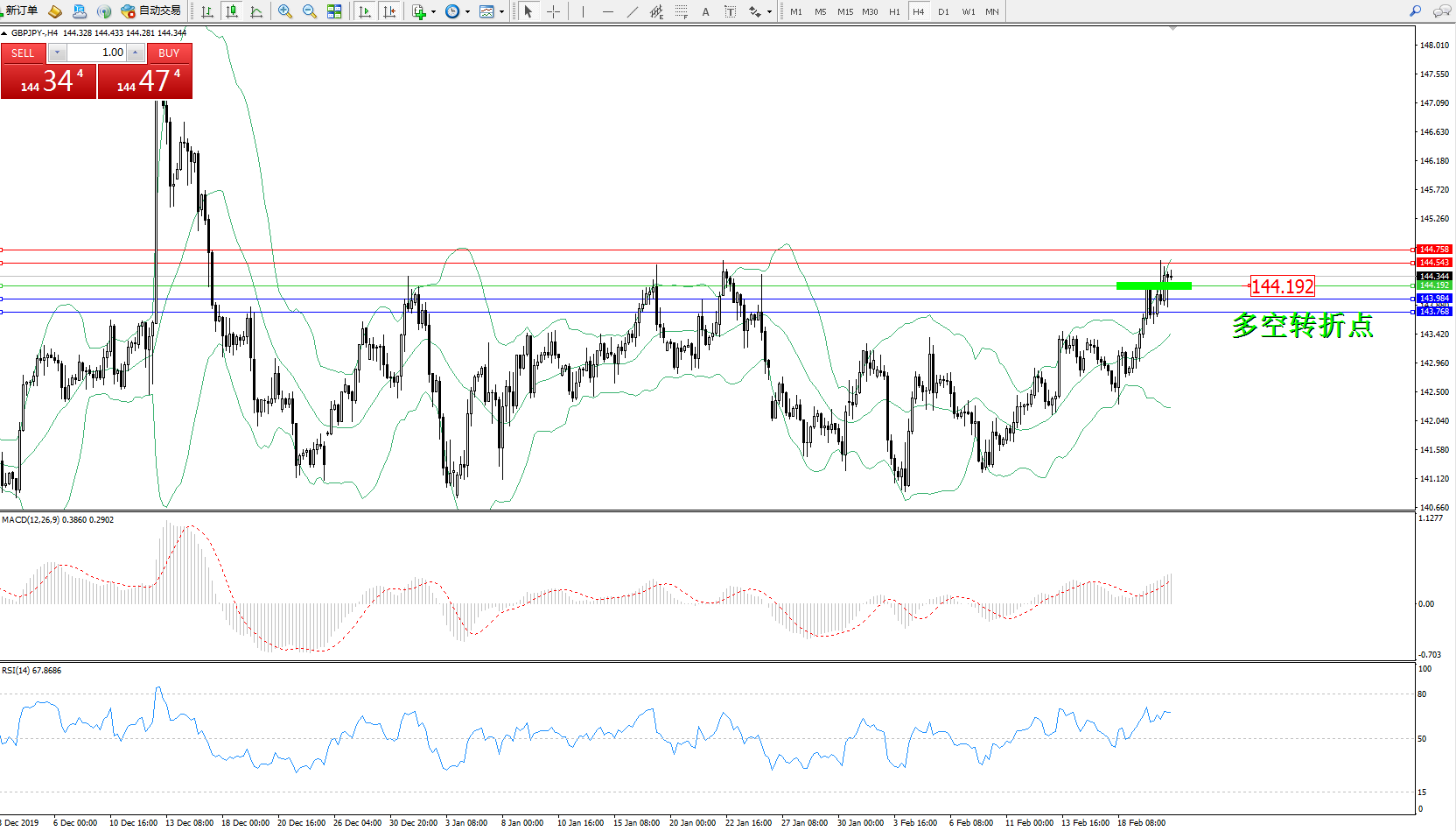 交易策略:144.192上方看涨,目标144.543、144.758
