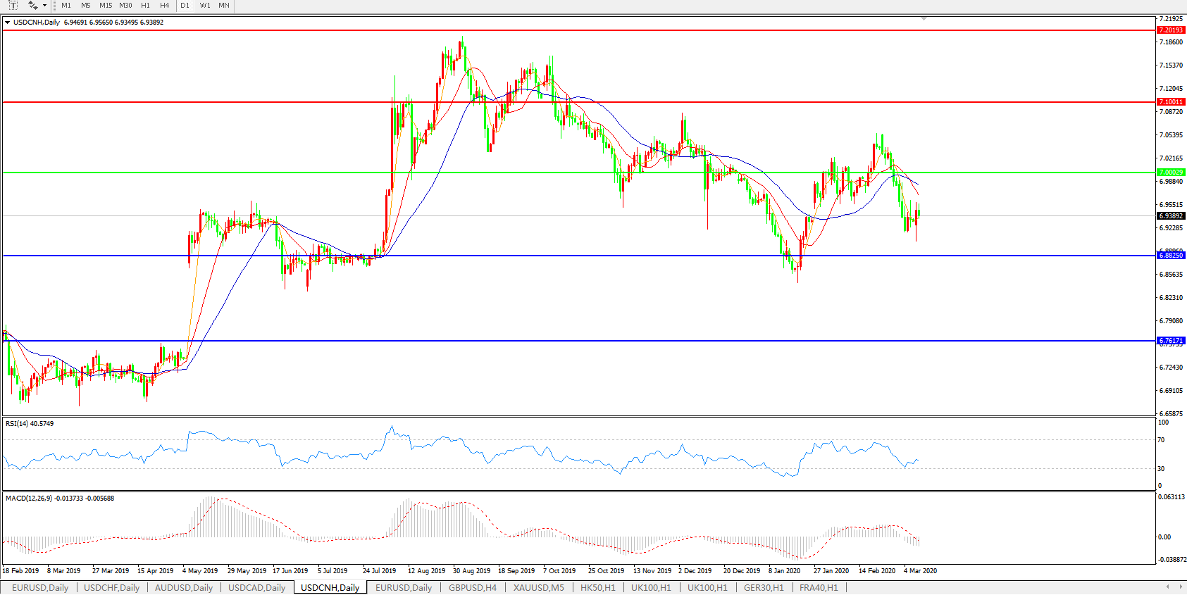 交易策略: 在7.0000之下,看跌,目标价位为6.8820,然后为6.7600。