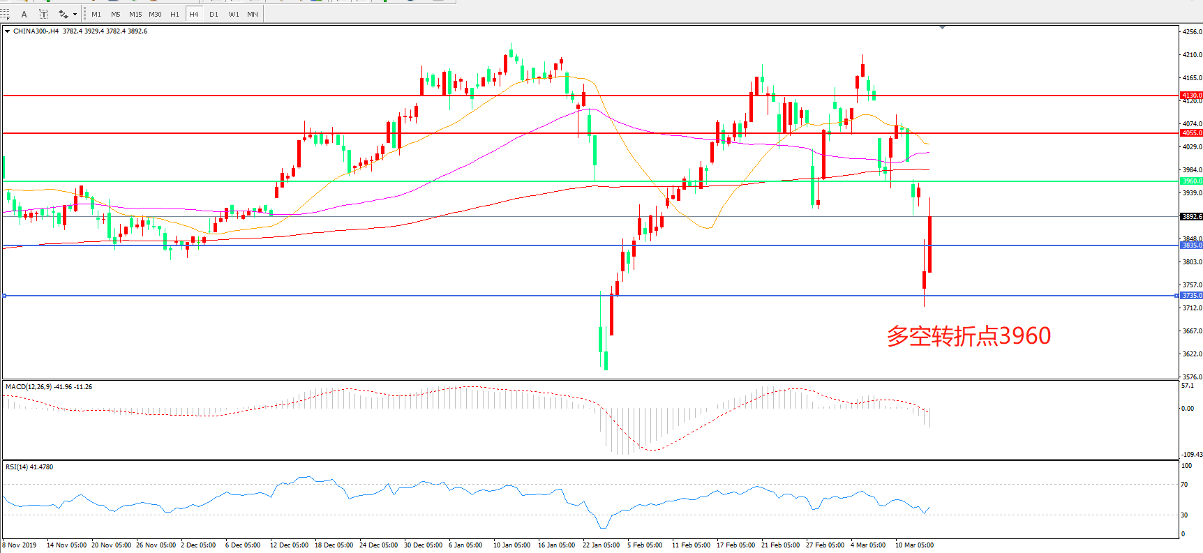 沪深300  CHINA 300   4小时图