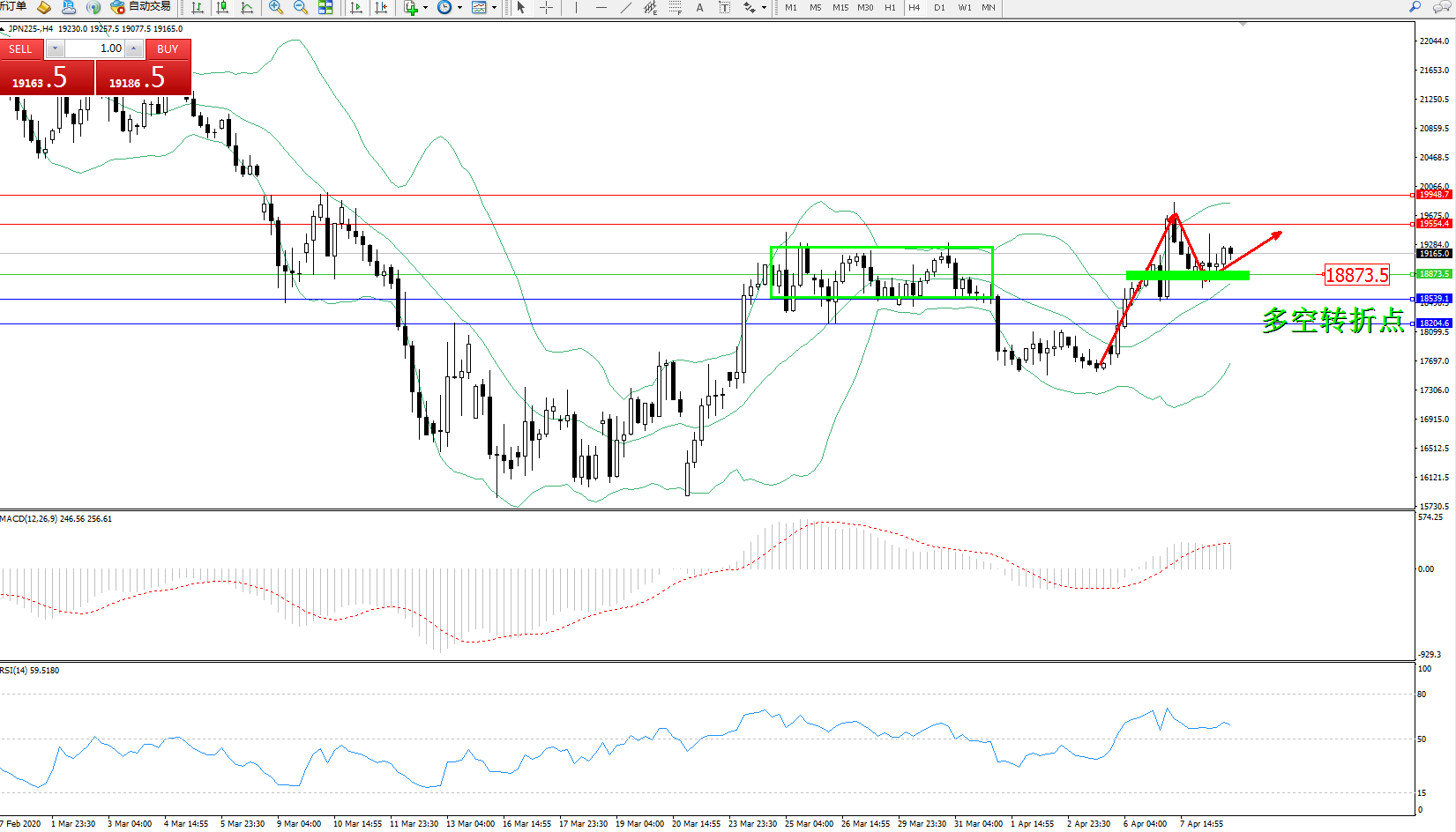 日经225指数4月8日(周三)收盘上涨417.32点,涨幅2.20%,报19367.50点。亚洲股市纷纷承压,预期未来有更多疲软的经济数据出现,投资者继续选择美元现金以规避流动性风险,在疫情如此严重的背景下,全球央行及财政行动可能已经全部释放,但全球经济的恶化仍在继续,尤其是就业市场遭遇重挫。鉴于大多数措施并不具有法律效力,并且公共交通、金融服务和食品商店仍在继续,日本的措施与欧洲和美国实行的封锁措施的尺度不同。日本2020年第一季GDP环比年率料下滑3.7%,第二季为下滑6.1%(3月份调查时的预估分别为下滑1.2%和增长1.9%);日本2020财年GDP料下滑2.1%,2021财年料增长1.6%(3月份调查时的预估分别为增长0.1%和增长0.8%)。