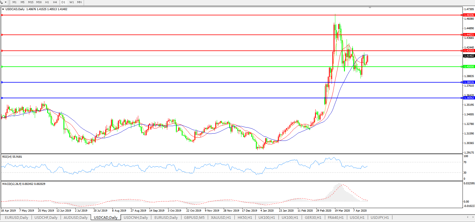 美元兑加元USDCAD    日线图: