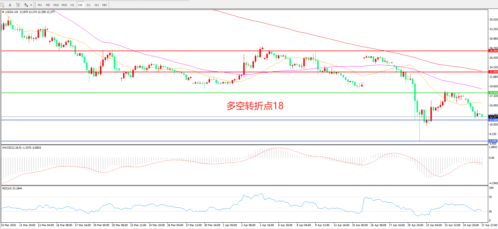 美国原油USOIL 4小时图