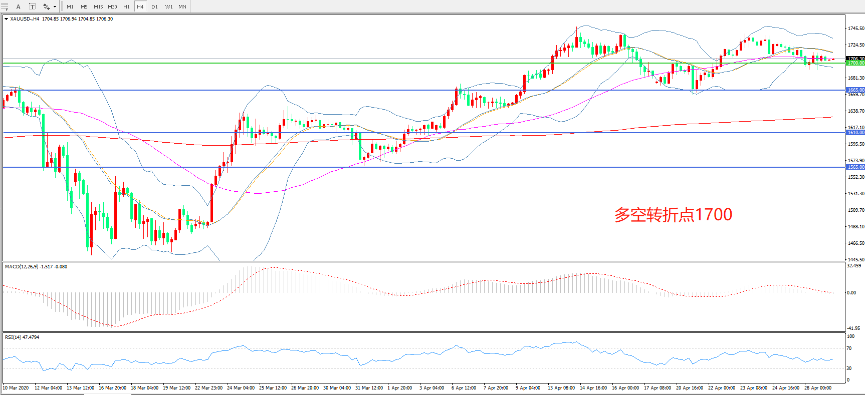 交易策略: 在1700.00 之上看涨,目标1750.00   1785.00