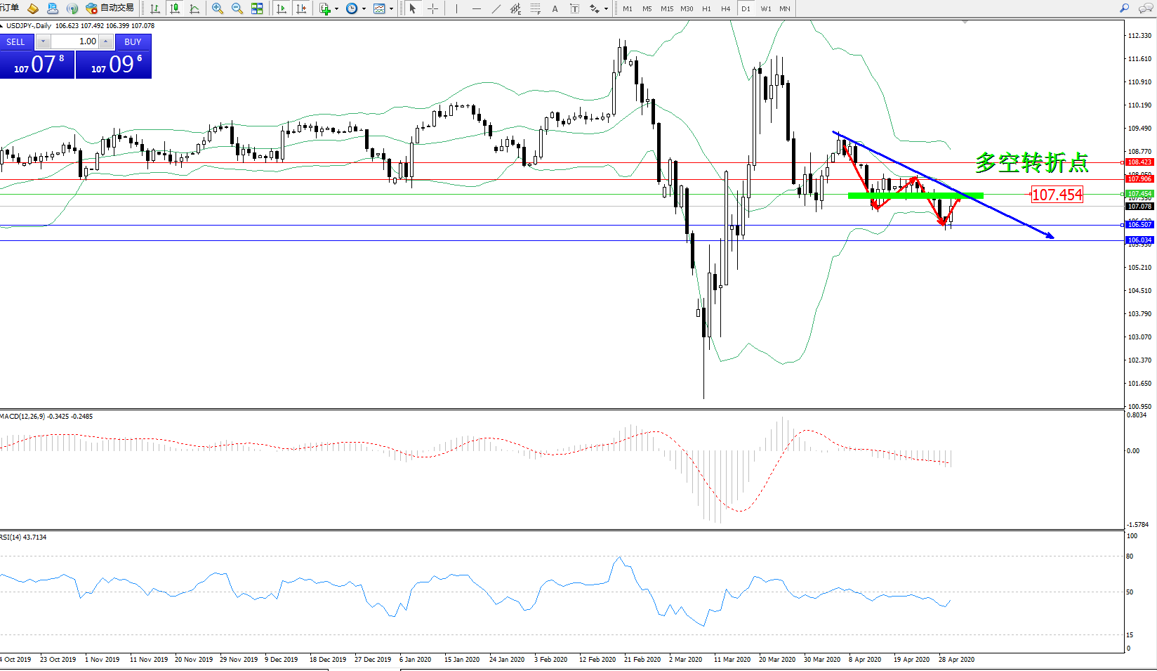 多空转折点:107.454