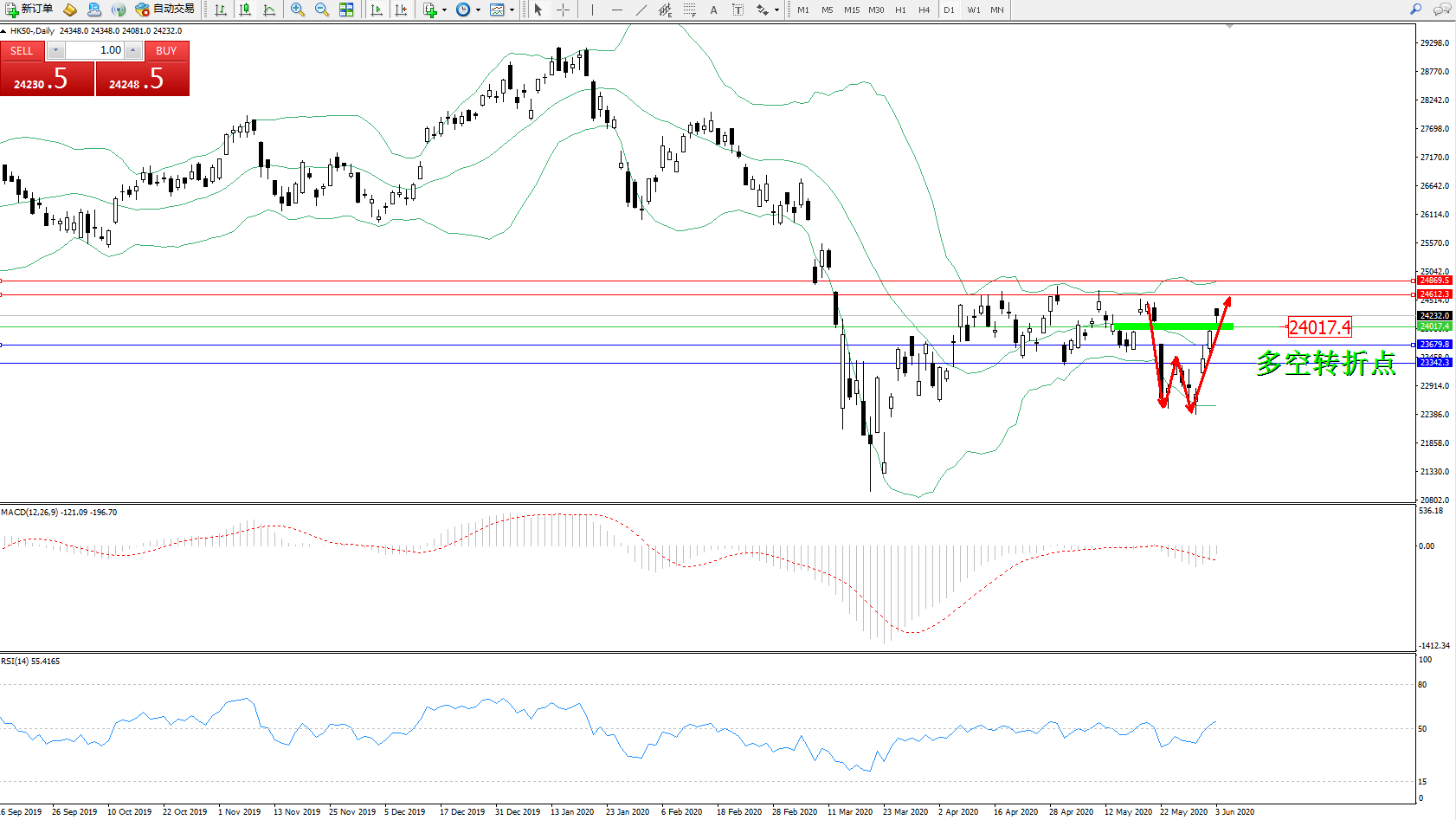 技术点评:低位多头动力强势拉升上扬至布林带指标中上轨区间震荡,有继续上行态势,布林带指标呈收口走势中,前期高位压制节点正逐渐上行试探中,MACD指标处于空头区域持续震荡回升至0轴线附近徘徊,RSI指标多头动力持续震荡上穿50均衡线进入多头区域徘徊中;