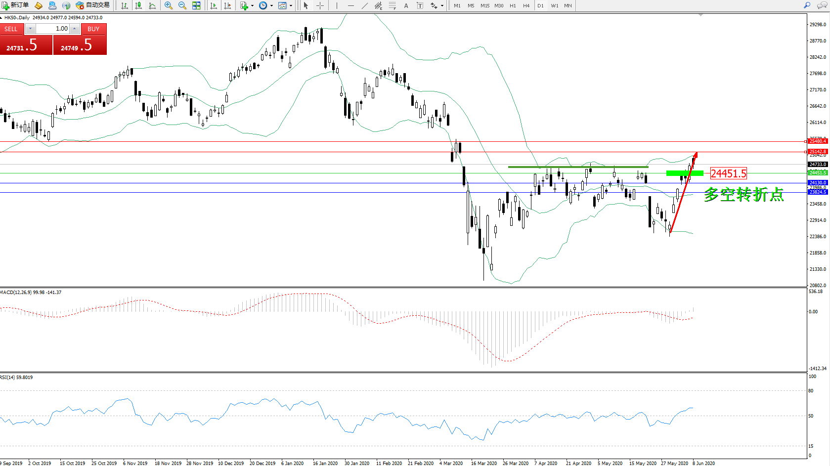 香港恒生指数6月8日(周一)收盘上涨6.36点,涨幅0.03%,报24776.77点;港股三大指数均现高开低走行情,。盘面上,武汉本地股、香港零售股涨幅靠前,周黑鸭大涨近9%,周生生升超7%;近期热门股五菱汽车大幅下跌,截至收盘,五菱汽车下跌20.63%。今日大市成交额为1292.93亿港元,南下资金逆势净流入15.76亿港元。市场对经济复苏预期的不断强化、流动性紧缩风险消除,推动美元走弱。美国就业数据改善,超预期的经济数据降低市场避险情绪。港元与人民币汇率变化受利差与风险事件影响。近期港美利差再度走阔,套息交易再次推升港元汇率。利差因素以外,港元、人民币升值更重要的原因在于市场避险情绪缓解。