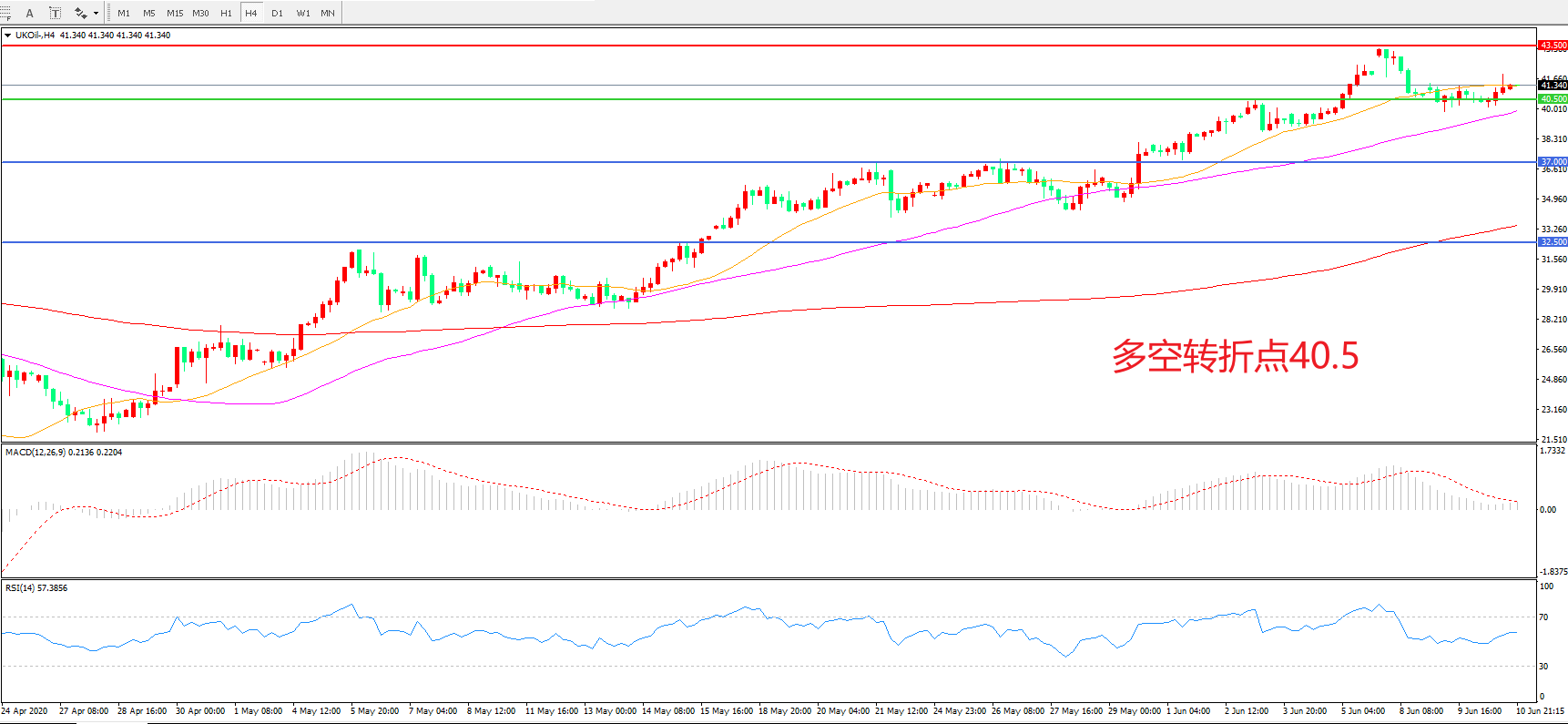 周三(6月10日),根据美国能源信息署公布的数据显示,当周EIA原油库存增长572万桶,远超预期,但原油价格却并没有受到过多影响,布伦特原油在库存数据公布后反而出现上行,最终收报41.34美元/桶。这表明目前市场上多空博弈仍然比较激烈,多头仍然比较顽强。