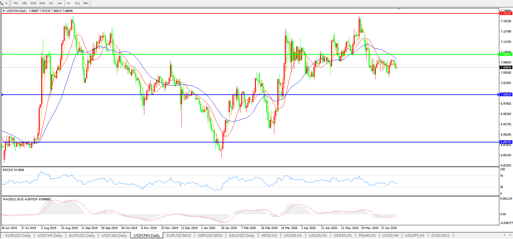 美元兑人民币USDCNH    日线图: