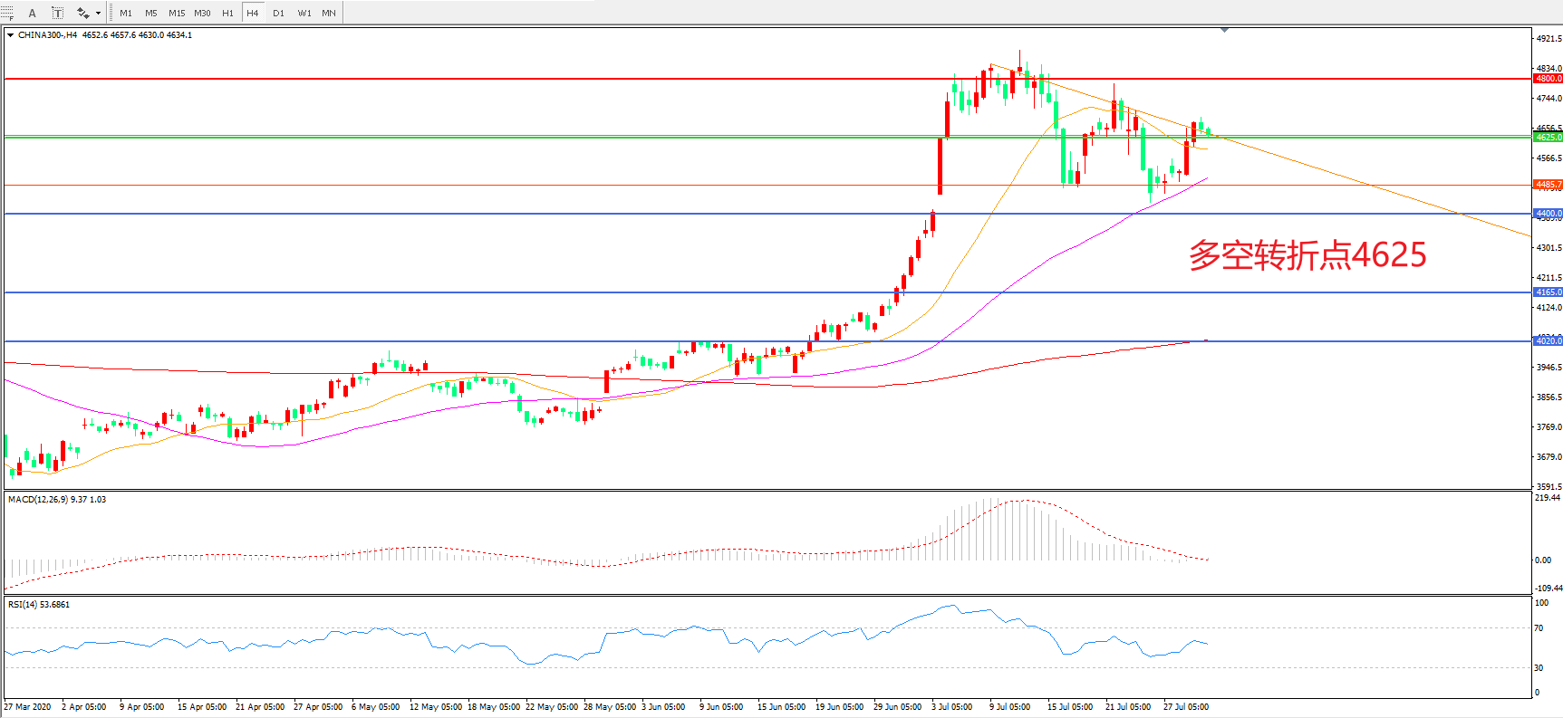 多空转折点:4625.00