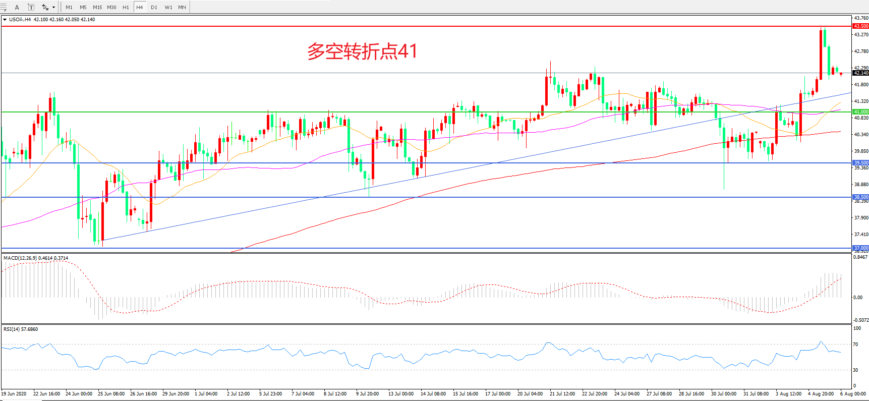 交易策略:在41.00之上看涨,目标43.50         46.00