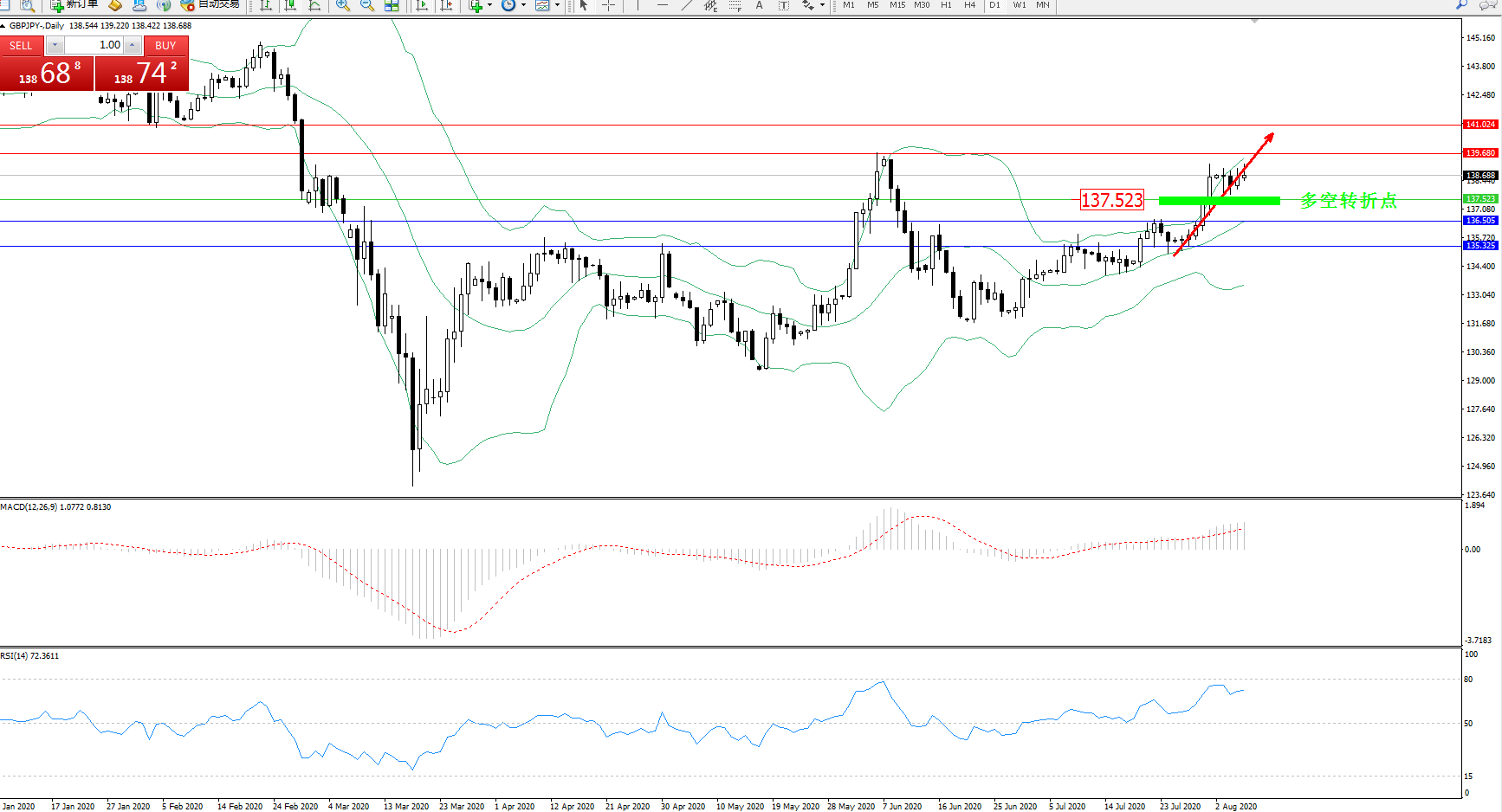 交易策略:137.523上方看涨,目标139.680、141.024