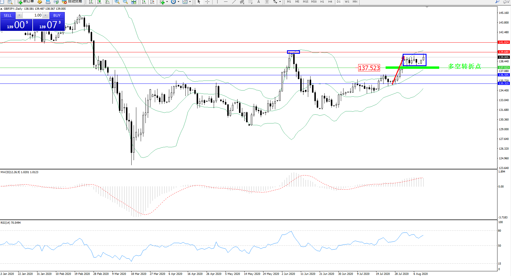 交易策略:137.523上方看涨,目标139.680、141.024