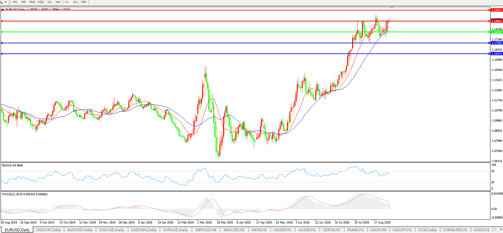 备选策略:1.1800上方看涨,目标1.1900、1.2000