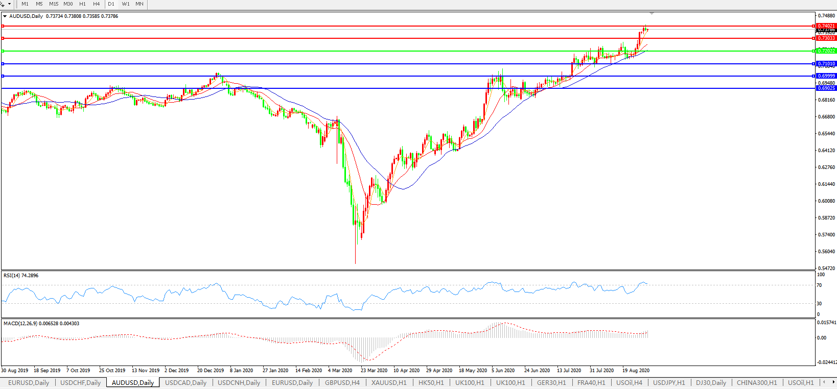澳元兑美元AUDUSD    日线图: