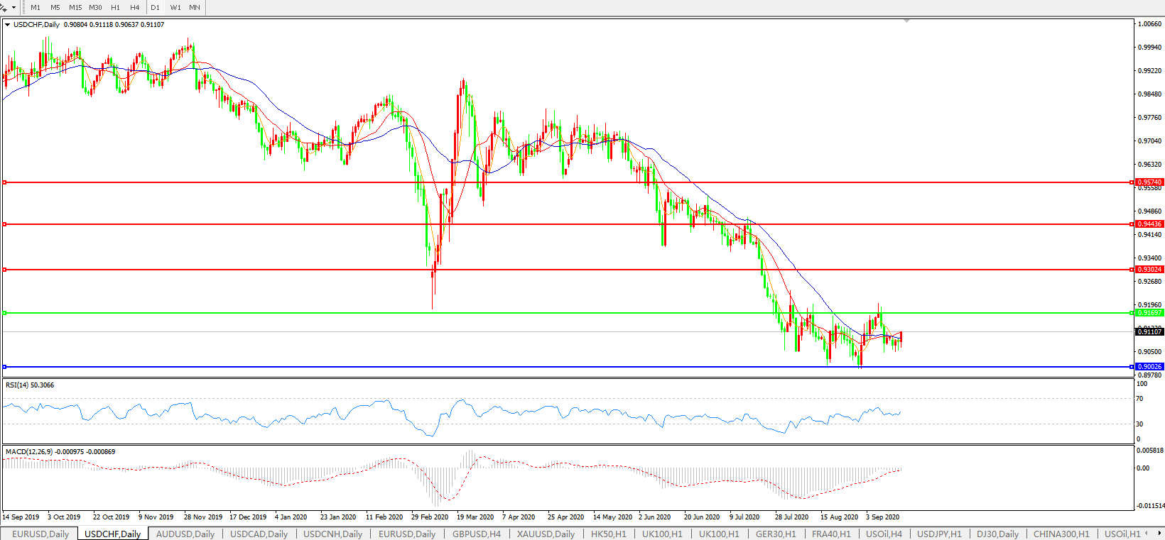 美元兑加元USDCHF 日线图: