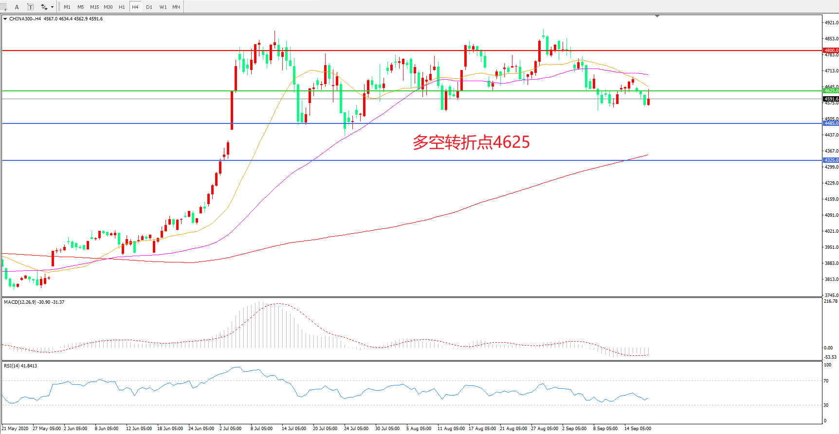 多空转折点:4625.00