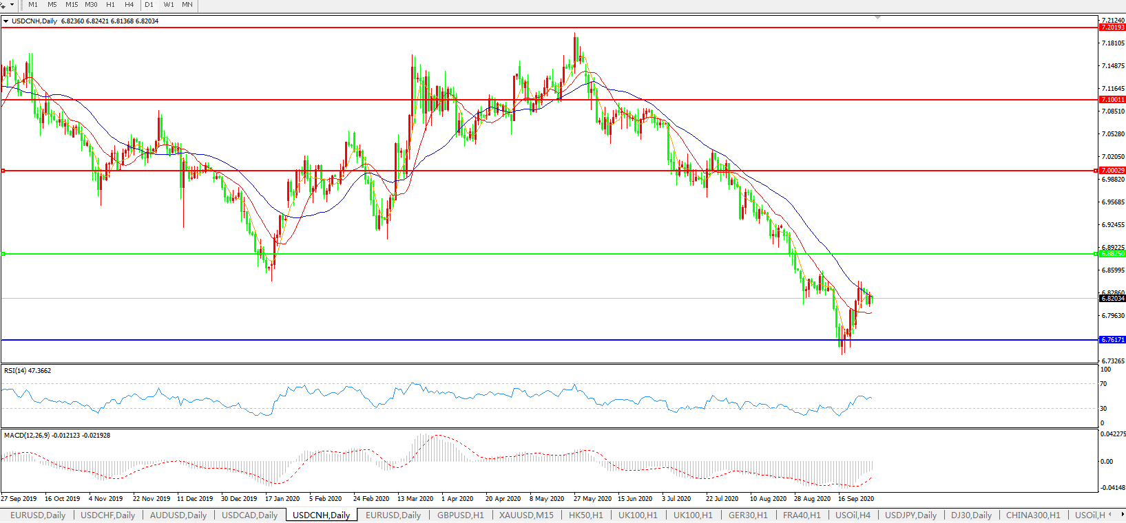 美元兑人民币USDCNH 日线图: