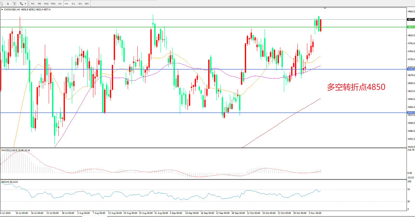 多空转折点:4850.00