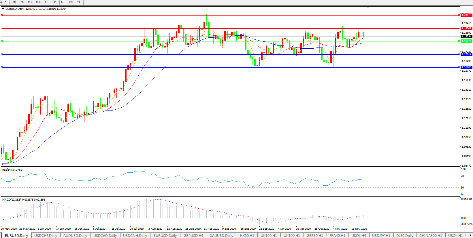 交易策略:1.1800上方看涨,目标1.1900、1.2000