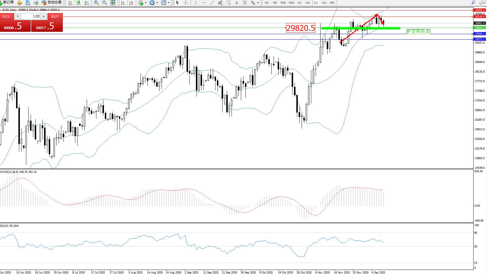 道琼斯指数12月10日(周四)收盘下跌69.60点,跌幅0.23%,报29999.26点。美股三大指数涨跌互现,上周美国初请失业金人数跃升至近三个月高点,因新增新冠确诊病例不断增加,导致更多企业关闭,这进一步证明,疫情和缺乏额外的财政刺激正在损害美国经济;疫苗带动的整体乐观情绪持续,也促使投资者忽视美国疲弱的就业数据;据外媒报道,一旦辉瑞/BioNTech新冠疫苗获得美国食品药品管理局(FDA)的紧急授权,美国联邦政府预计在本周内开始分发290万剂新冠疫苗,这两家公司最早可能于周四或周五获得批准 ;推动美国新冠疫苗研发的“曲速行动计划(Operation Warp Speed)”官员古佩尔纳(Gustave Perna)表示,辉瑞疫苗要求每位接种者在间隔三周的时间内注射两剂疫苗;联邦政府预计周内开始分发的290万剂疫苗中,政府还储备了50万剂疫苗,以备紧急情况或生产过程出现问题时使用。