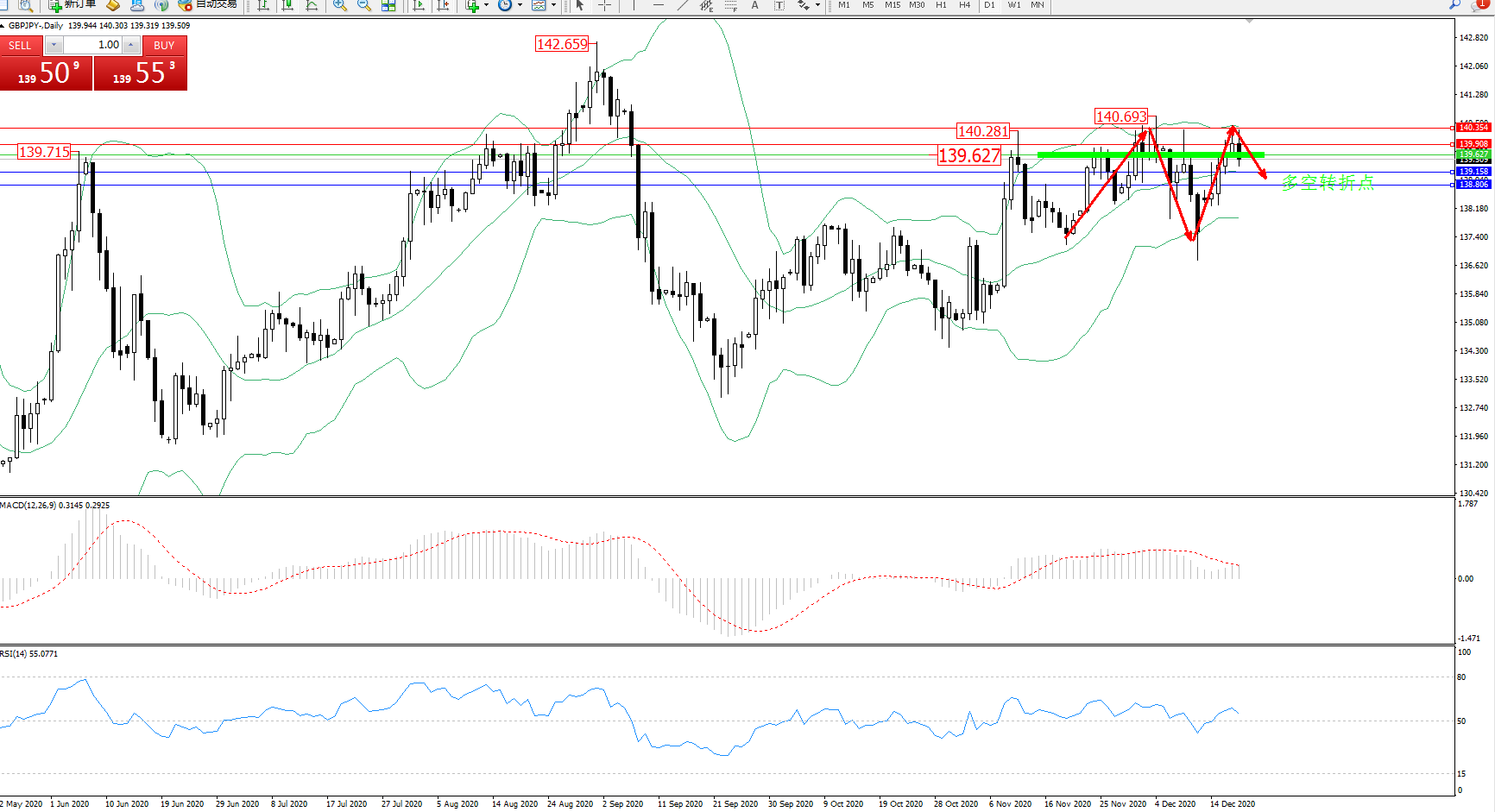 交易策略:139.627下方看跌,目标139.158、138.506