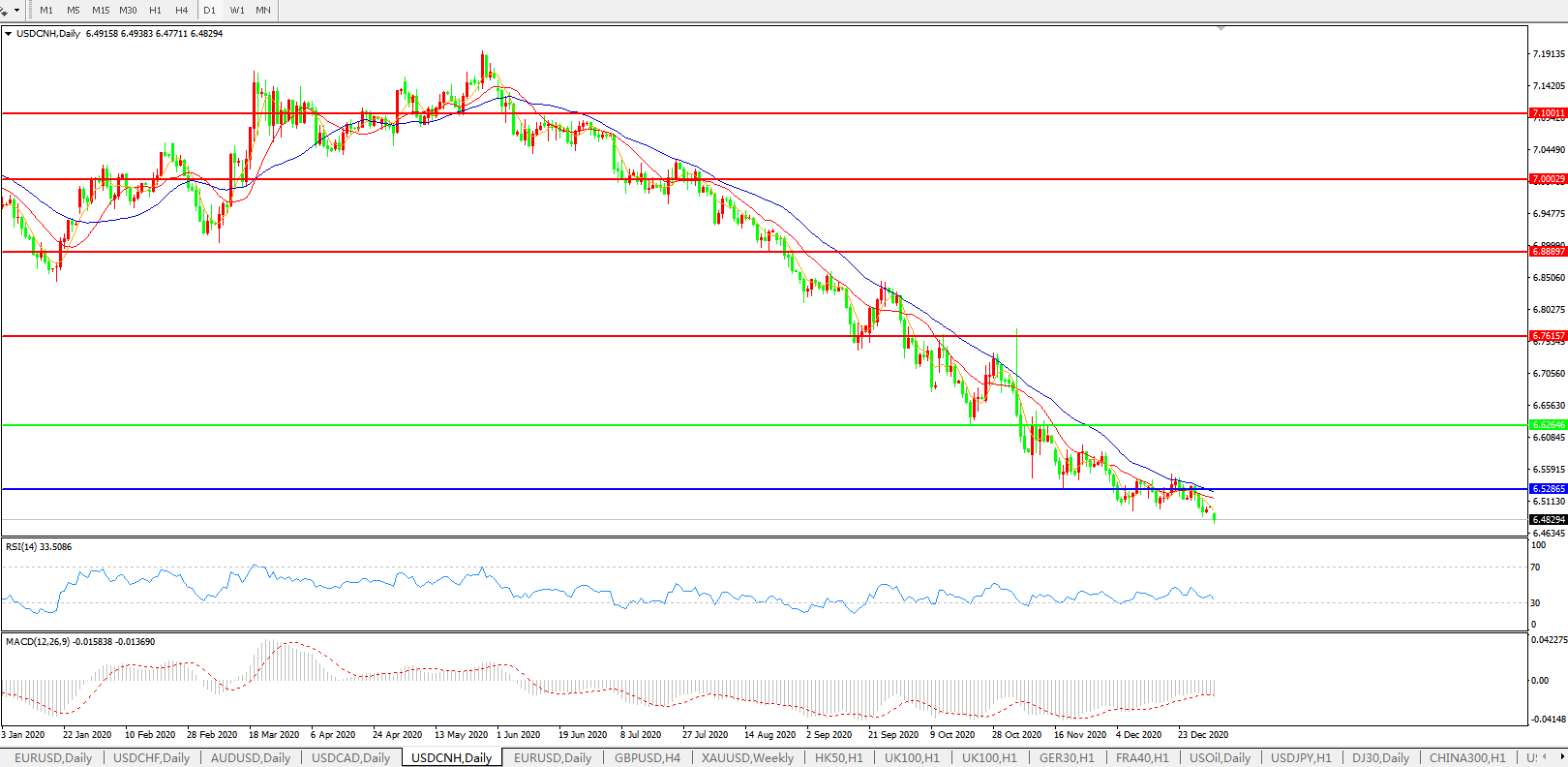 交易策略: 在6.6265之下,看跌,目标价位为6.5286,然后为6.3500。