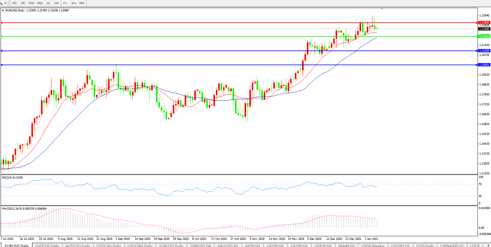 交易策略:1.2200上方看涨,目标1.2300、1.2400