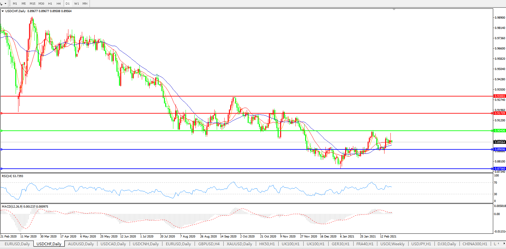 美元兑瑞郎USDCHF    日线图: