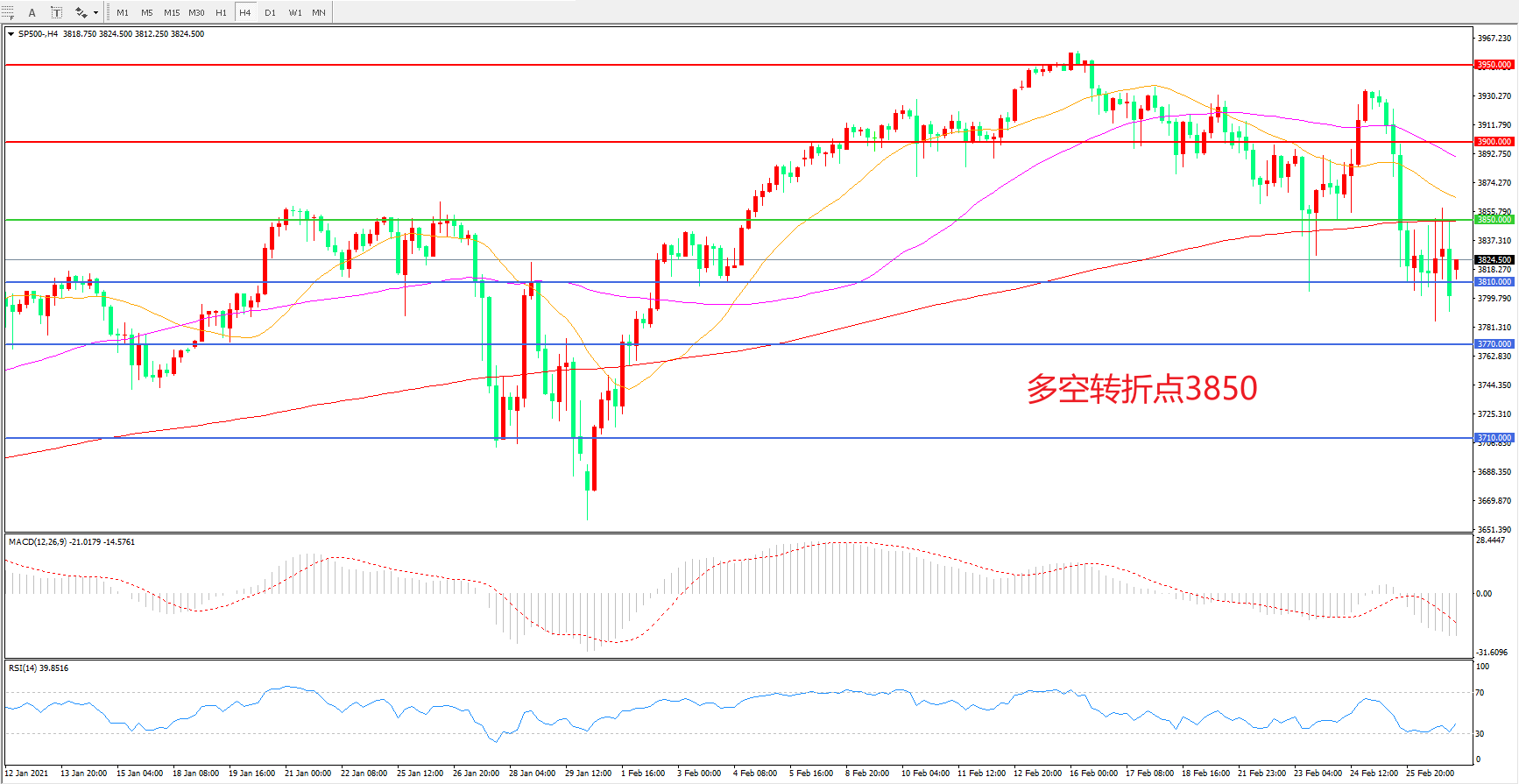 多空转折点:3850.00