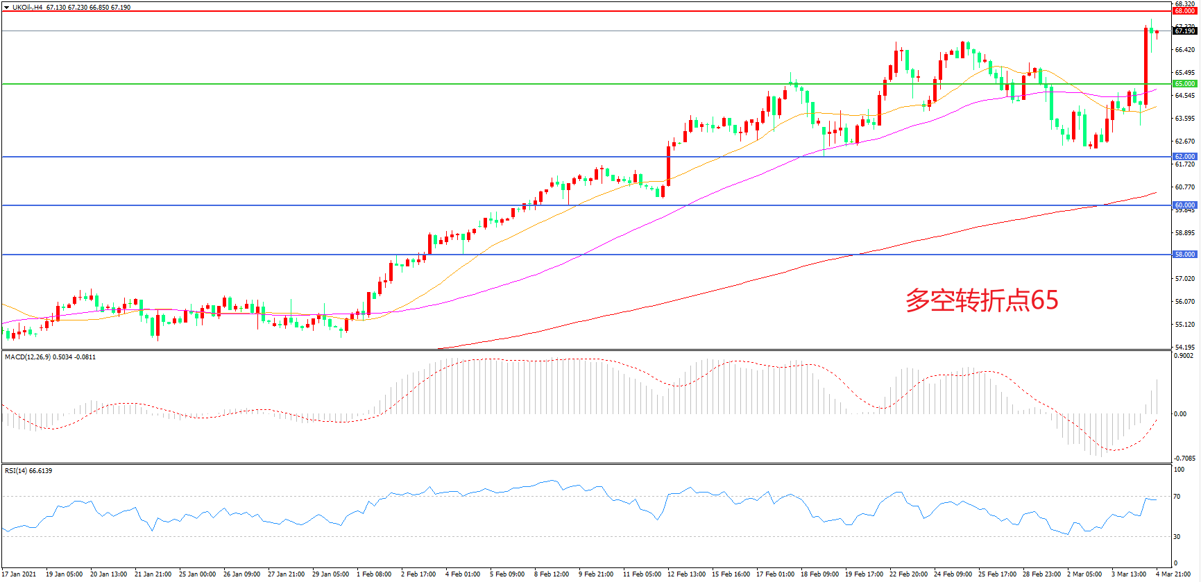交易策略:  在65.00之上看涨,目标68.00    72.00