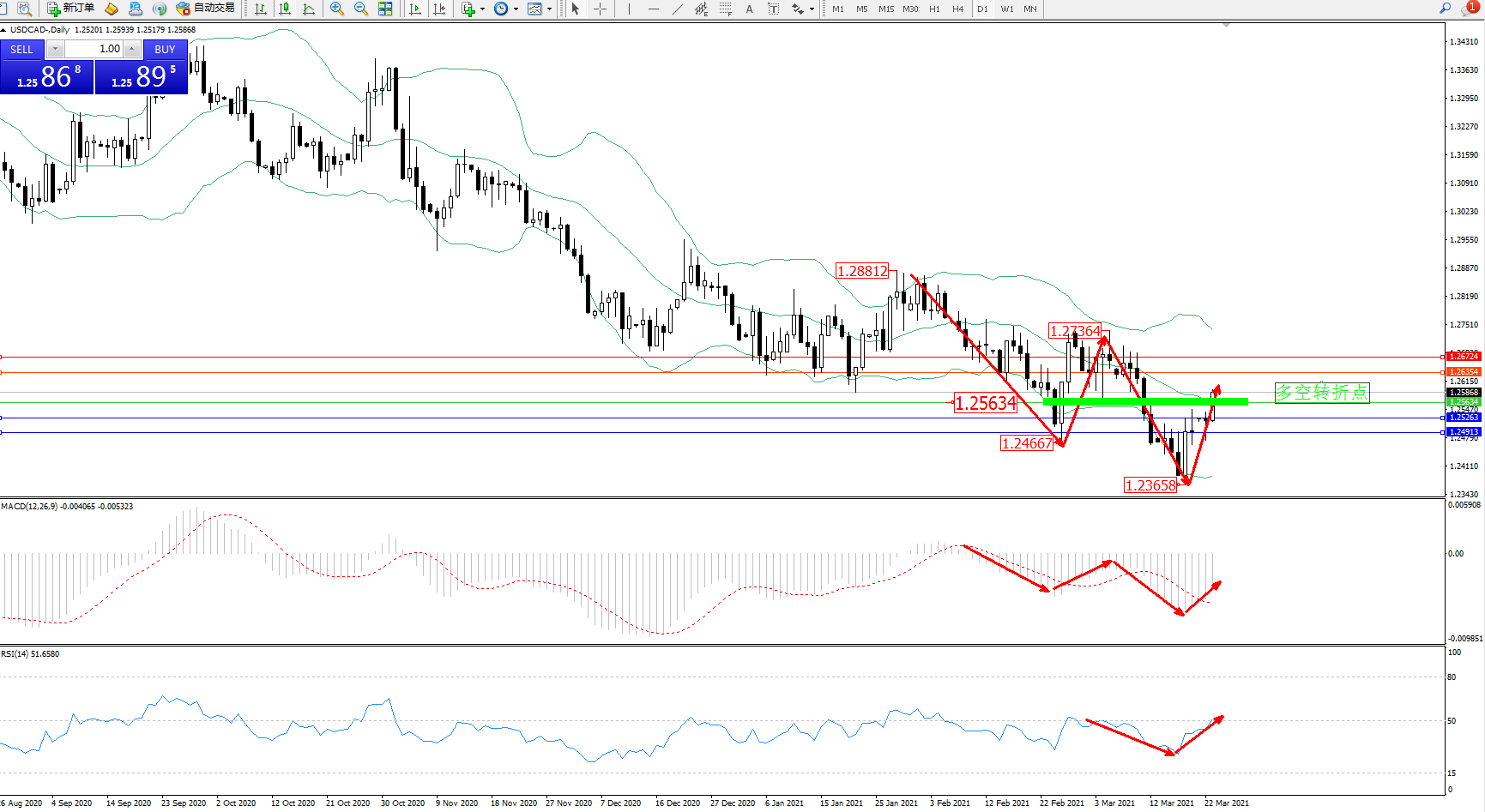 美元加元USDCAD——日K线图显示: