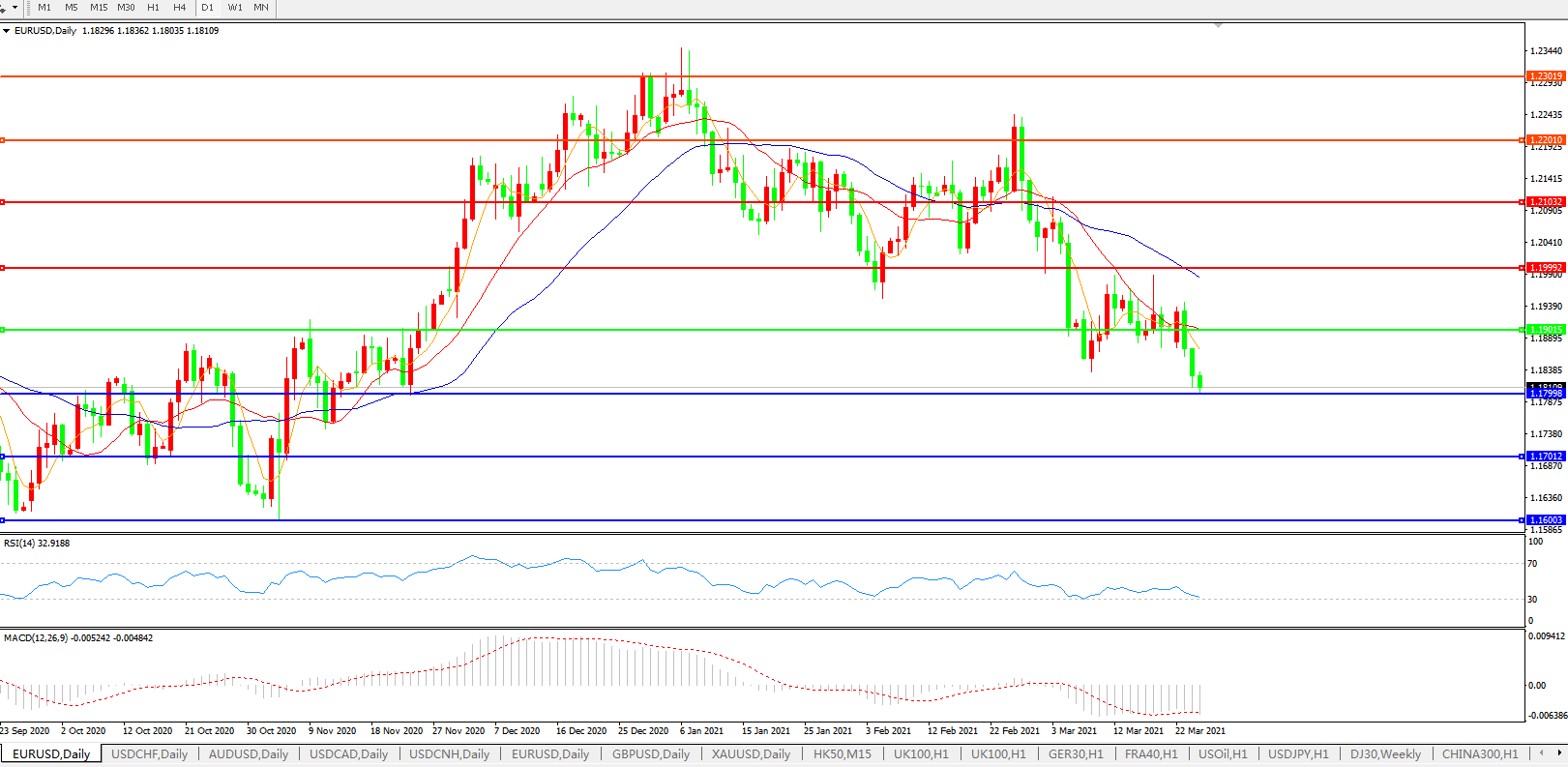 交易策略:1.1900下方看跌,目标1.1800、1.1700
