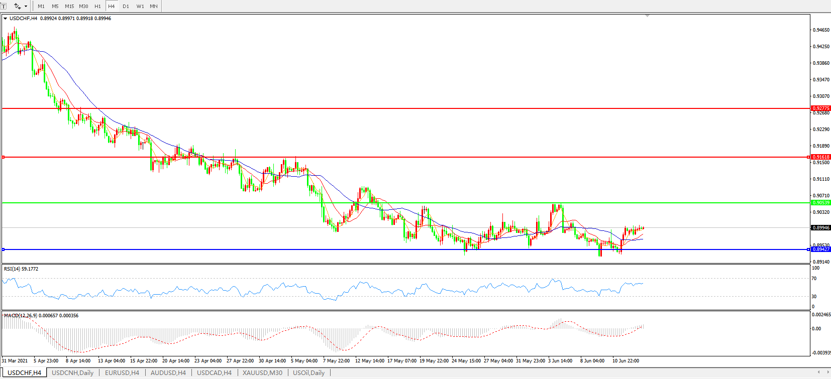 美元兑瑞郎USDCHF    4小时图: