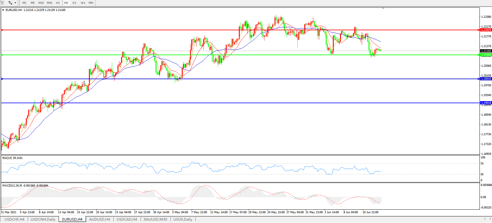 欧元兑美元EURUSD 4小时图: