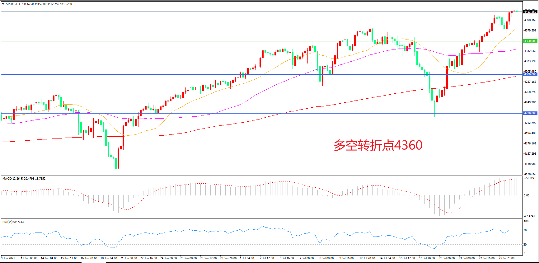 本周,美股二季度财报季将迎来最繁忙的一周。大约有165家标普500指数成分股公司将发布财报,其中包括FAAMG五大科技股。率先拉开科技股财报序幕的特斯拉继续领涨推动标普500再创新高,收报4414点。目前投资者除了密切关注企业财报外,同时还在等待美联储议息会议,鲍威尔将在会后就货币政策立场发表声明,务必重点关注。