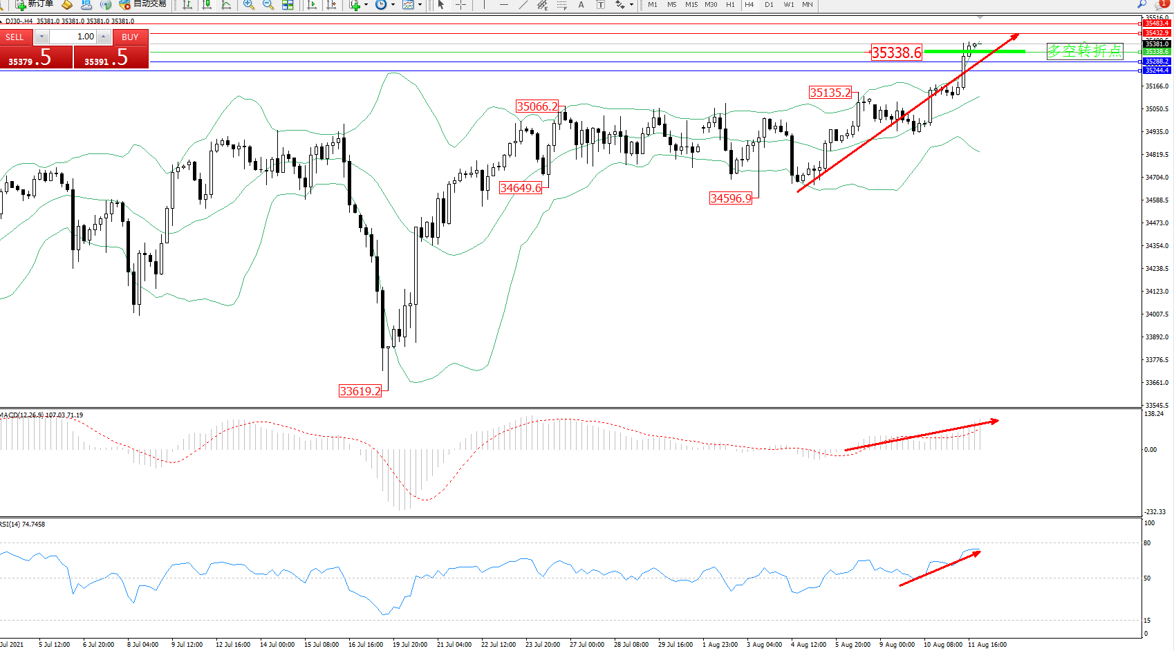 道琼斯指数8月11日(周三)收盘上涨219.77点,涨幅0.62%,报35484.44点;道指初步收涨,美国7月消费者价格涨幅有所放缓,但在物价上涨打击消费者信心并推动政策辩论之际,这种放缓未能完全消除成本上涨带来的压力。在供应受制约和需求激增情况下,成本压力上升的企业正提高商品和服务价格。包括原材料短缺、运输瓶颈和招聘困难在内的挑战挥之不去,可能在未来数月继续构成更广泛的价格上行压力。时,随着经济重启带来的物价上升因素消退,价格上涨程度也可能缓和下来。