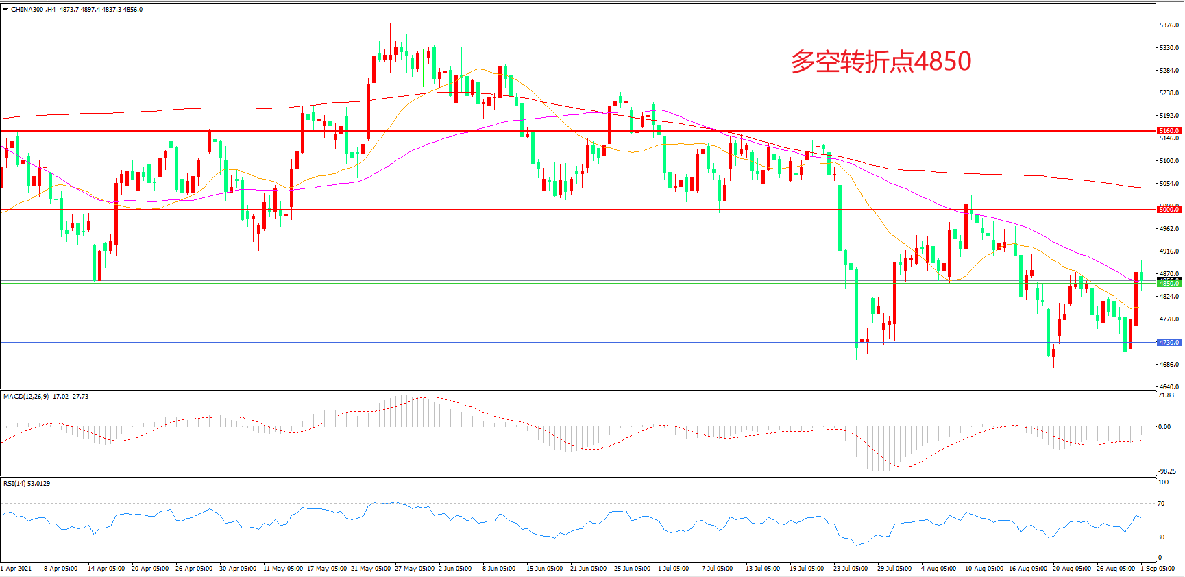 多空转折点:4850.00
