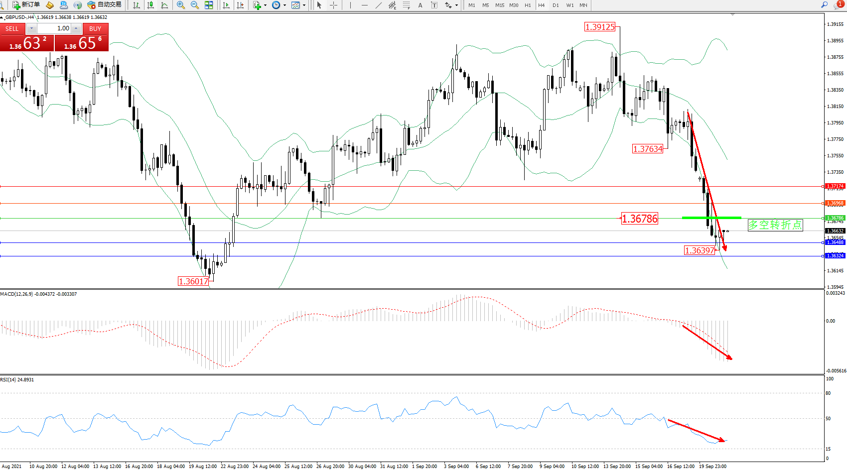 交易策略:1.36786下方看跌,目标1.364881.36324