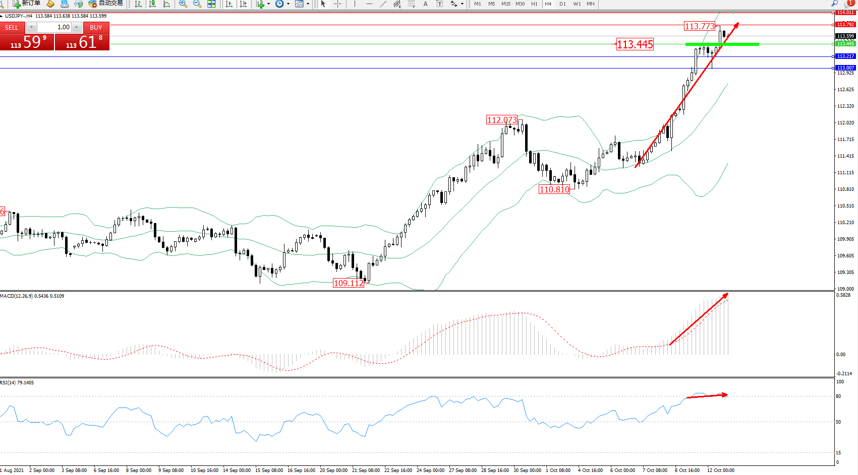 交易策略:113.445上方看涨,目标113.792、114.011