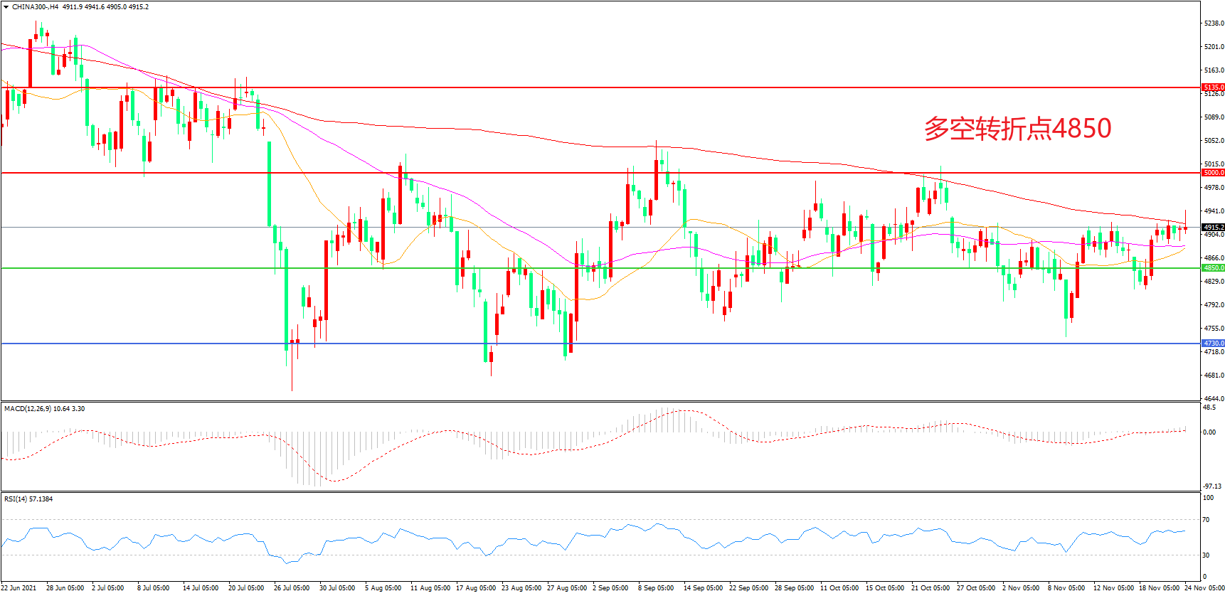 多空转折点:4850.00