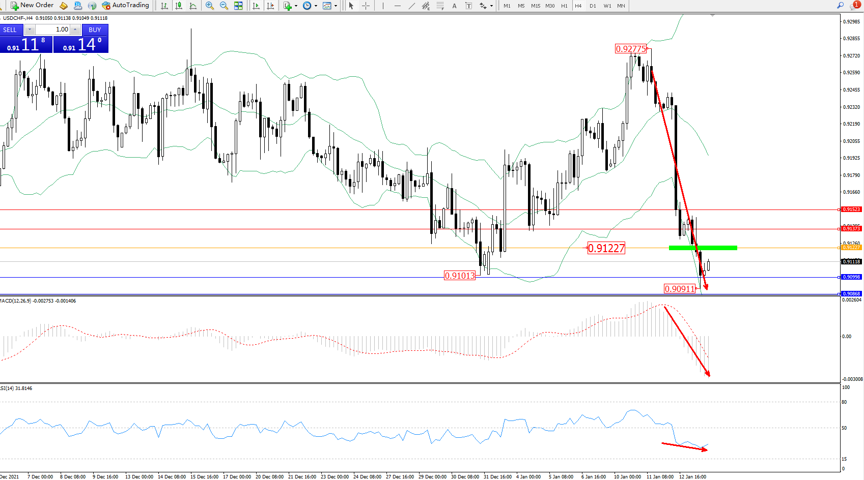 美元瑞郎USDCHF——4小时K线图显示: