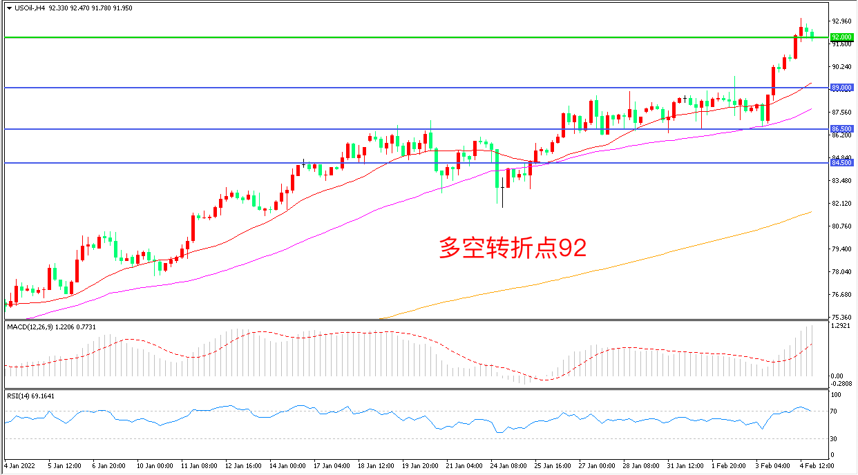 交易策略:在92.00之上看涨,目标95.00 98.00
