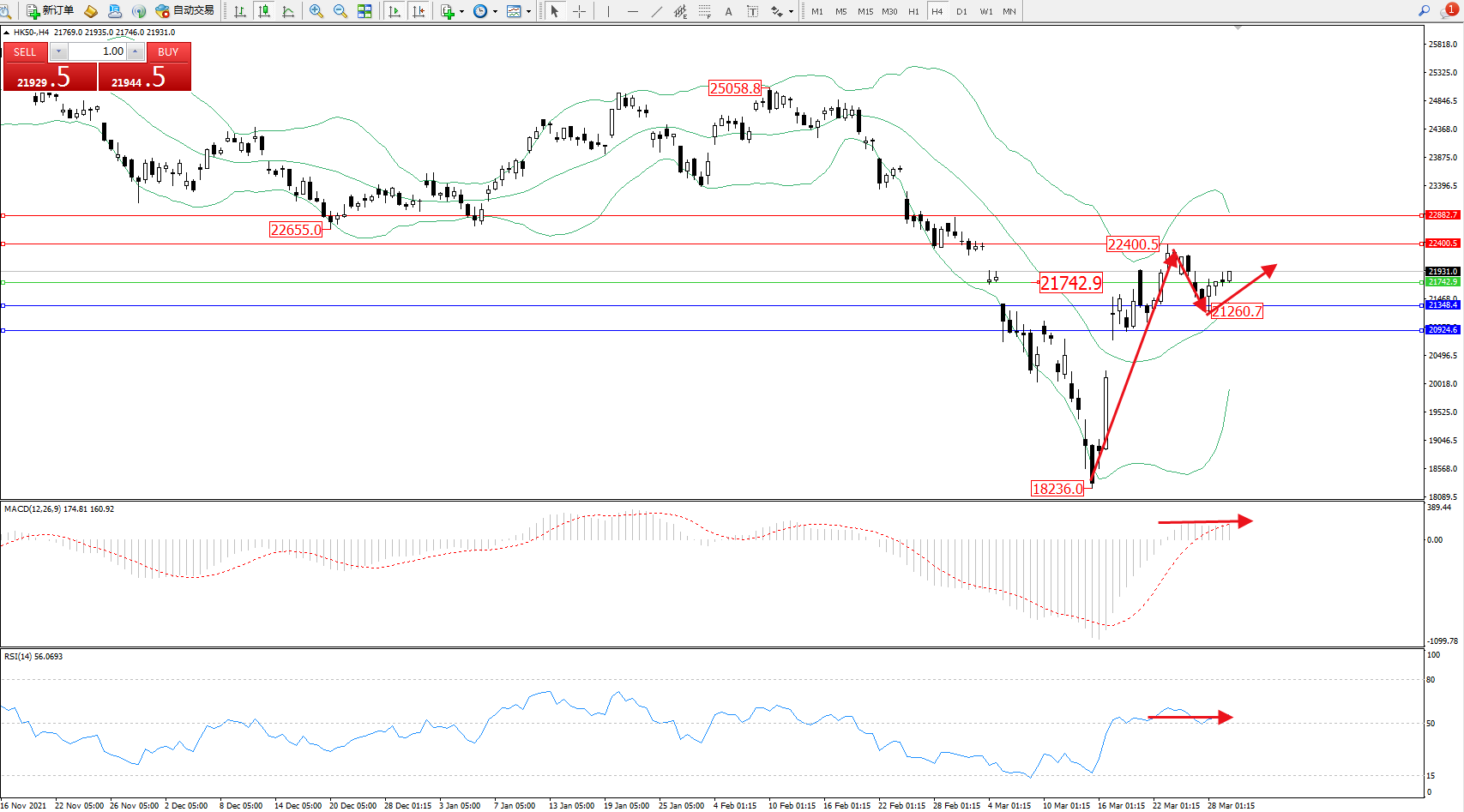 交易策略:21742上方看涨,目标22400、22882