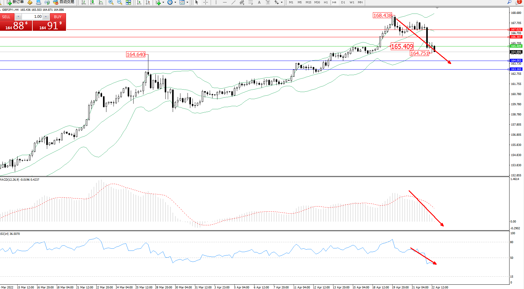 交易策略:165.409下方看跌,目标164.003、163.165