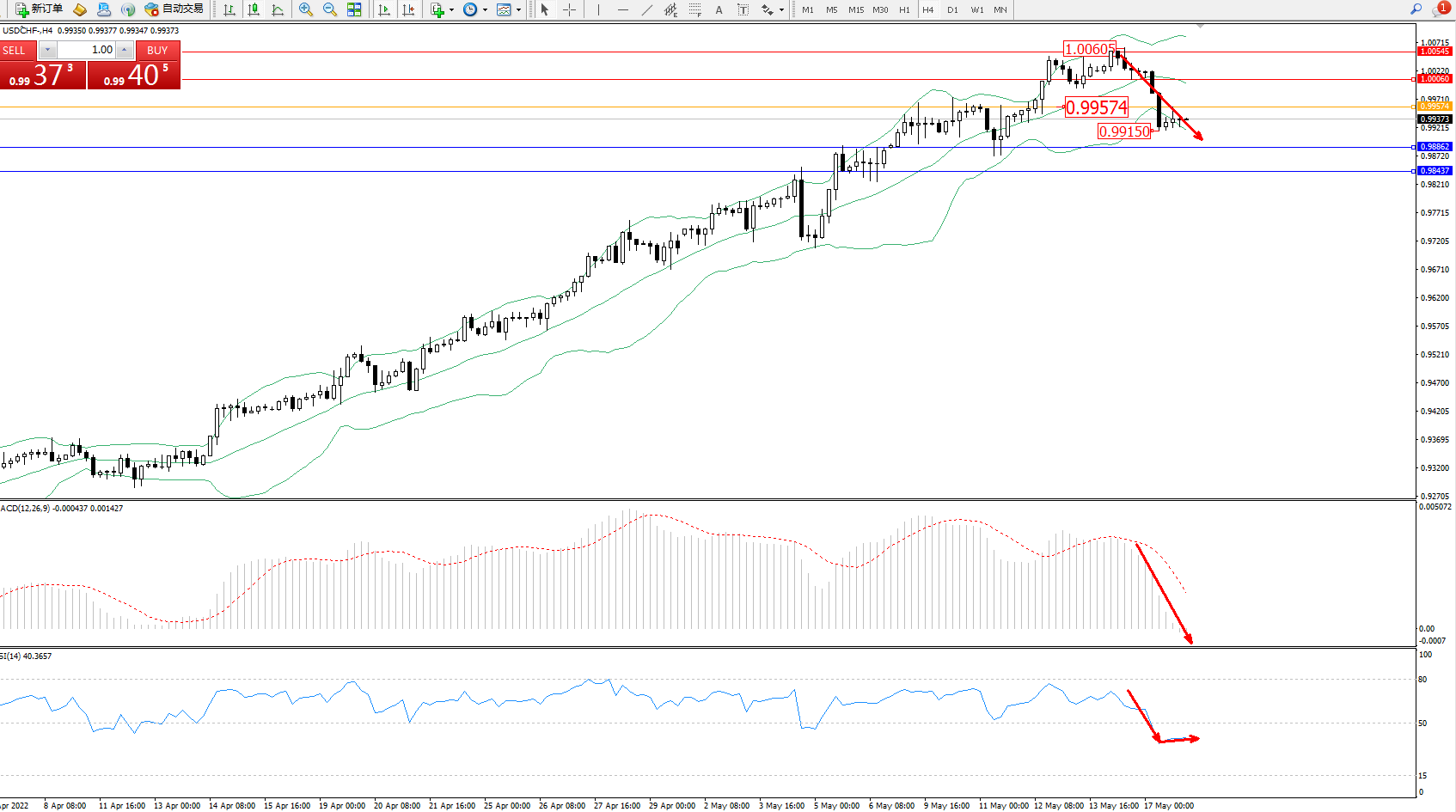 美元瑞郎USDCHF——4小时K线图显示: