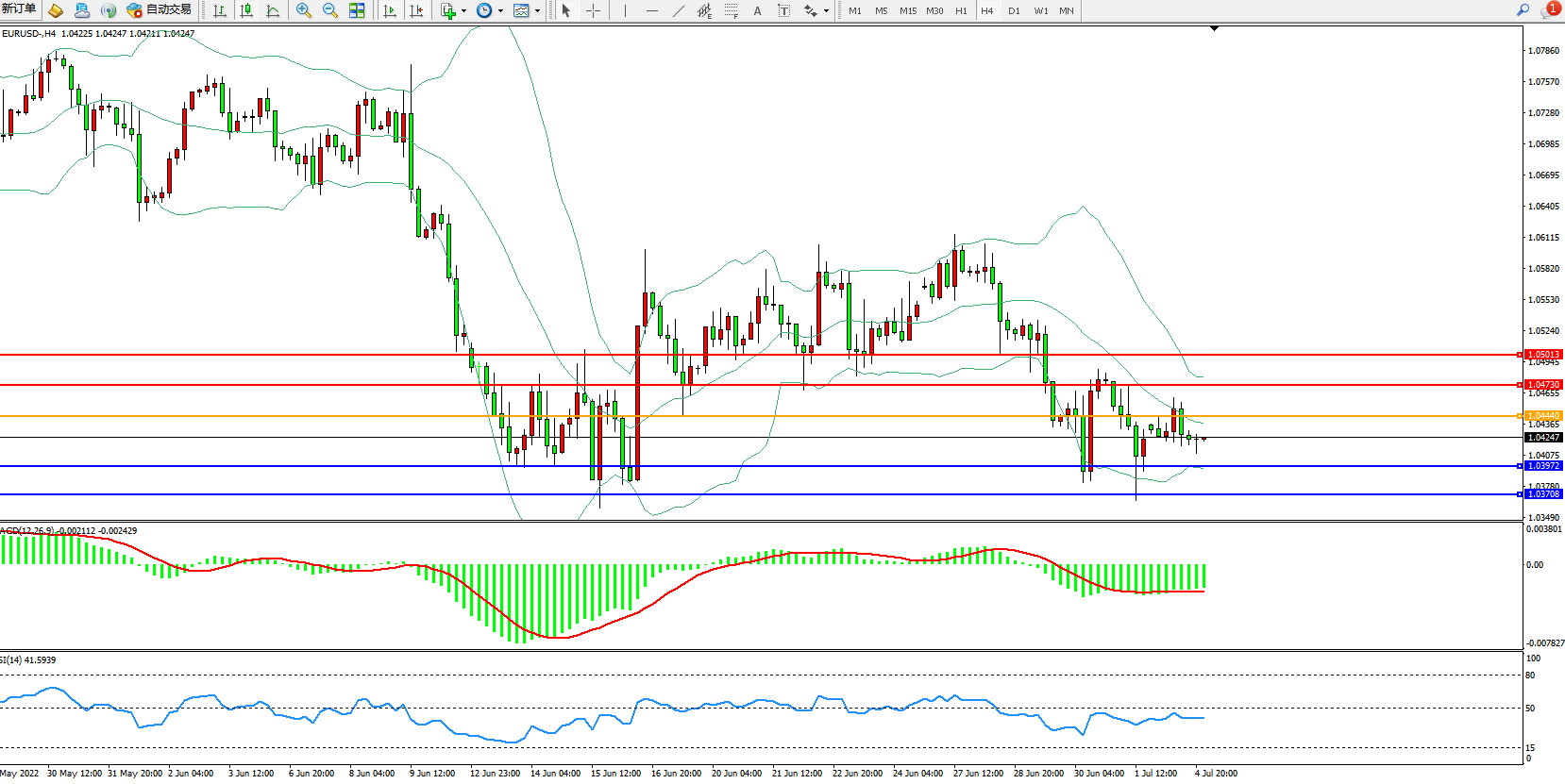 欧元美元EURUSD—4小时K线图显示
