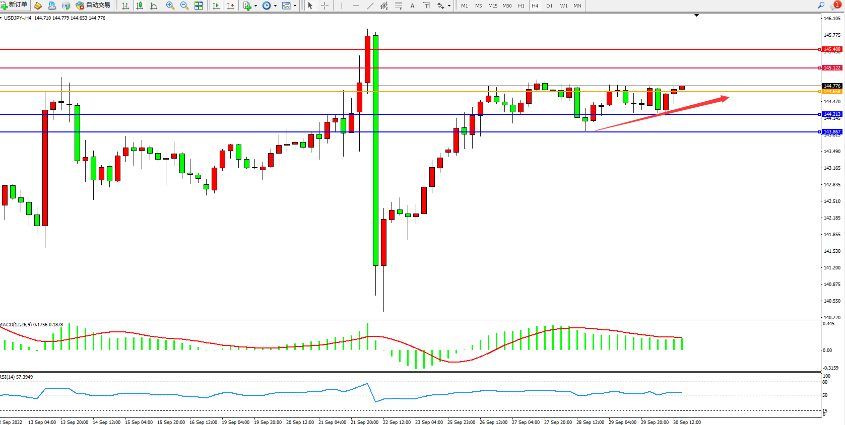 交易策略:144.658上方看涨,目标145.122、145.488