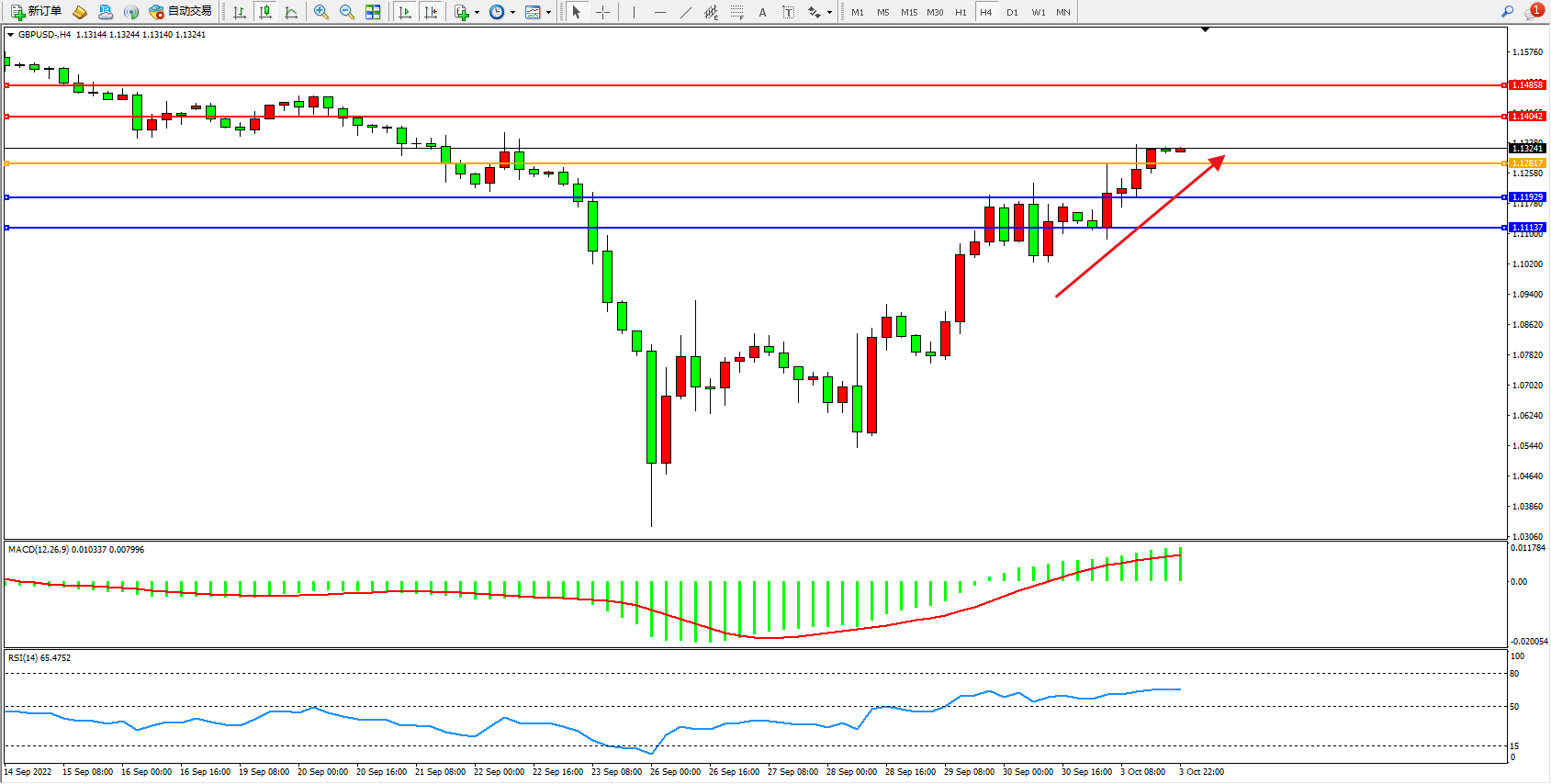 英镑美元GBPUSD ——4小时K线图显示: