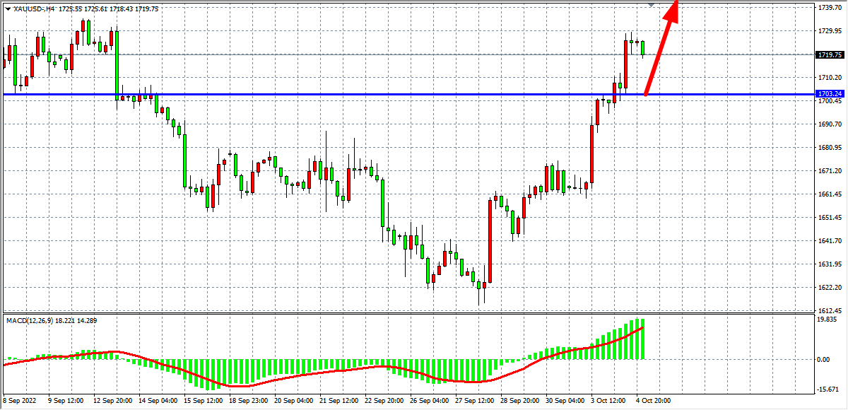 周 二(10月4日)市场延续前一日的走势,随着美联储激进的加息落地后,市场开始压住美联储明年的降息转向,同时叠加对美国经济衰退的担忧,有关瑞士信贷崩溃的传闻都增加了美联储在动荡中最终转向的可能性。美元指数继续承压,现货黄金进一步扩大涨幅,一度逼近1730关口,最终收涨1.48%。
